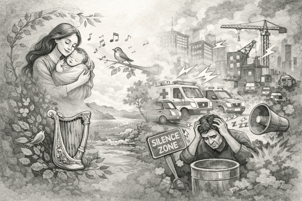 Modern life generates noise in abundance. Unplanned urban growth has blurred the boundaries between residential and commercial spaces. We wake to the honking of school traffic; as the day unfolds, the din intensifies — office commuters, construction machines, and blaring loudspeakers layering one disturbance over another.
